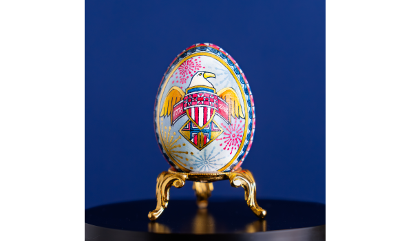 The 2026 egg was created by master egg artist Mark Malachowski using the intricate Pysanky technique, a traditional wax-resist method known for its detailed, geometric designs. This craftsmanship is evident throughout the piece, which blends artistry with symbolism tied to American history.