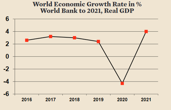After the Covid-19 recession of 2020, which lowered world economic growth to -4.3%, this year is projected to show a recovery according to the World Bank. As people become inoculated, the recessionary effects of the pandemic on the world economy should diminish and something resembling normal will begin to emerge, barring a virus mutation that renders the vaccines worthless.