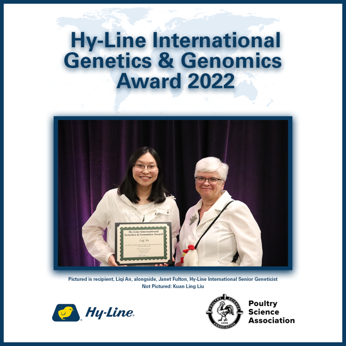 “The award was established in 2018 by the Hy-Line International Research and Development department to promote poultry research by graduate students and to support the Poultry Science Association,” said Dr. Petek Settar, Senior Geneticist for Hy-Line International.” We are pleased to award Liqi An and Kuan Ling Liu, who demonstrated such promising research for the future of the poultry industry.”