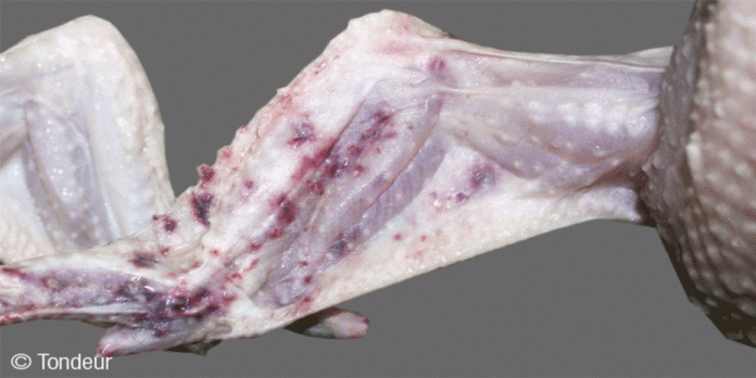 Across the globe, poultry carcass defects and condemnation — bruises, blood splash, breast blisters and red wing tips — are costing the broiler industry billions of dollars in economic losses, and the problem is growing annually. There are many causes for carcass defects and condemnation, but Cellulitis — a disease resulting from either scratched skin or intestinal translocation of specific strains of Escherichia coli (E. coli) — is considered the second most significant condemnation cause in processing plants in the United States that afflict poultry.